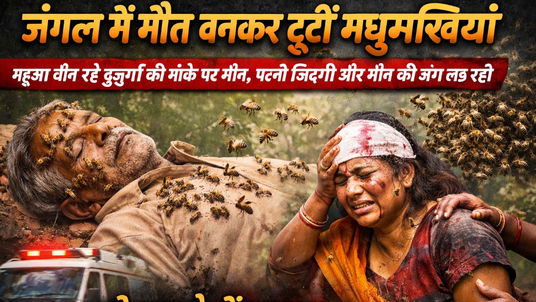 जंगल में मौत बनकर टूटीं मधुमक्खियां: महुआ बीन रहे बुजुर्ग की मौके पर मौत, पत्नी जिंदगी की जंग लड़ रही, पूरे इलाके में दहशत