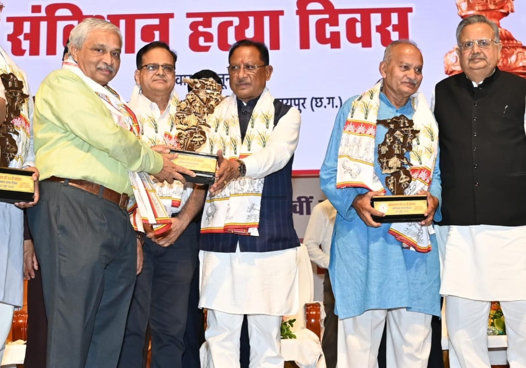 मुख्यमंत्री विष्णु देव साय आज राजधानी रायपुर के पंडित दीनदयाल उपाध्याय ऑडिटोरियम में आपातकाल की 50वीं वर्षगांठ के अवसर पर आयोजित संविधान हत्या दिवस कार्यक्रम में शामिल हुए।