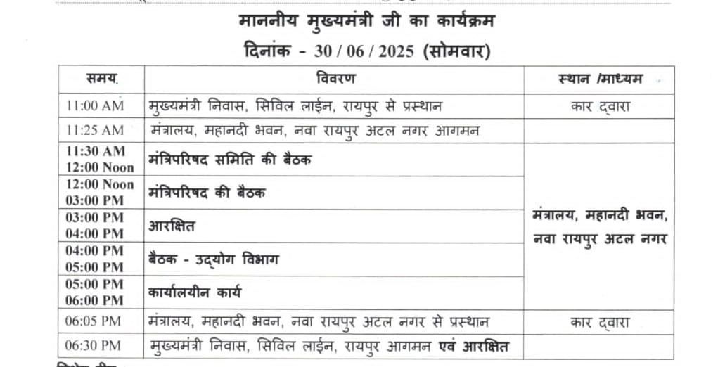 रायपुर, 30 जून 2025
