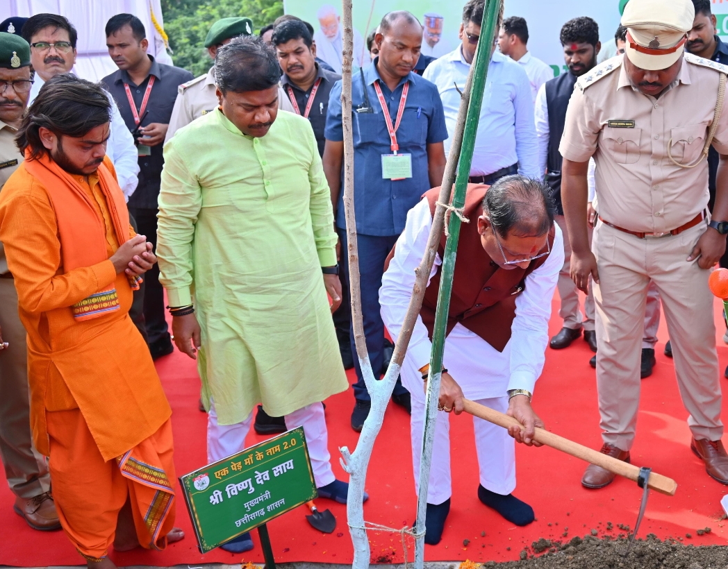 मुख्यमंत्री विष्णु देव साय ने आज नवा रायपुर स्थित नवीन विधानसभा परिसर में विधिवत पूजा-अर्चना कर गुलमोहर का पौधा रोपित किया। मुख्यमंत्री साय ‘एक पेड़ मां के नाम 2.0’ वृक्षारोपण कार्यक्रम में सम्मिलित हुए।