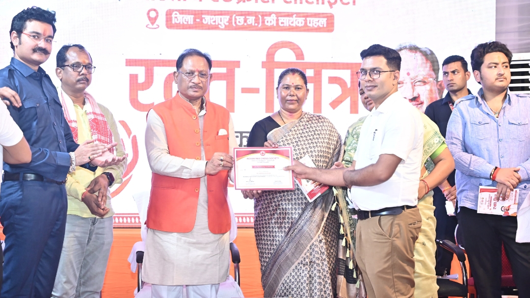 इस अवसर पर मुख्यमंत्री विष्णु देव साय ने कैम्प कार्यालय बगिया में आयोजित कार्यक्रम में भारतीय रेडक्रॉस सोसायटी जशपुर के आजीवन सदस्यों को प्रमाण पत्र वितरित किए और “रक्त-मित्र” पुस्तिका का विमोचन किया। इस दौरान उन्होंने नीरज शर्मा, अजय कुमार कुशवाहा और शिव नारायण सोनी को प्रमाण पत्र प्रदान कर उनके योगदान की सराहना की।