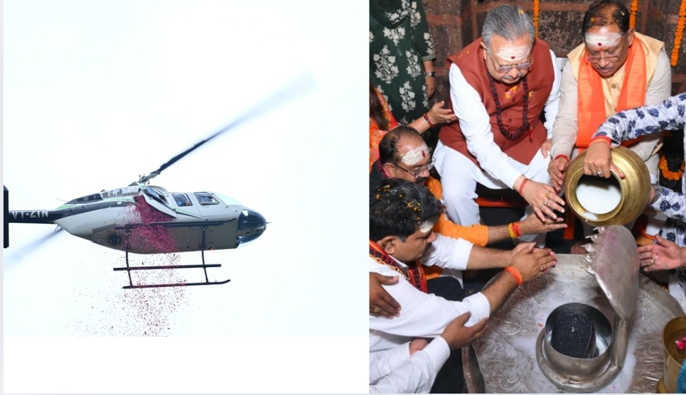 सावन मास के तीसरे सोमवार को छत्तीसगढ़ के प्राचीन, धार्मिक, ऐतिहासिक और पुरातात्विक महत्व के तीर्थ स्थल बाबा भोरमदेव मंदिर में भक्ति और श्रद्धा की गूंज उस समय चरम पर पहुँच गई जब मुख्यमंत्री विष्णुदेव साय ने हजारों कांवड़ियों और शिवभक्तों पर हेलीकॉप्टर से पुष्पवर्षा कर भव्य स्वागत और अभिनंदन किया। इस शुभ अवसर पर विधानसभा अध्यक्ष डॉ. रमन सिंह, उपमुख्यमंत्रीद्वय विजय शर्मा और अरुण साव उपस्थित थे।
