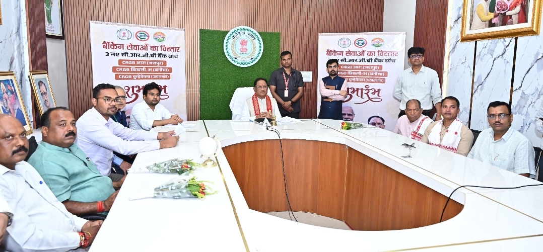 मुख्यमंत्री साय ने जशपुर जिले के बगिया ग्राम में मुख्यमंत्री कैंप कार्यालय से वर्चुअल माध्यम से जशपुर विकासखंड के ग्राम आरा, पत्थलगांव विकासखंड के ग्राम कुडे़केला (घरजियाबथान) और बगीचा विकासखंड के ग्राम छिछली में छत्तीसगढ़ राज्य ग्रामीण बैंक की नई शाखाओं का लोकार्पण किया। इस अवसर पर उन्होंने छत्तीसगढ़ राज्य ग्रामीण बैंक के 12वें वार्षिक प्रतिवेदन का भी विमोचन किया।