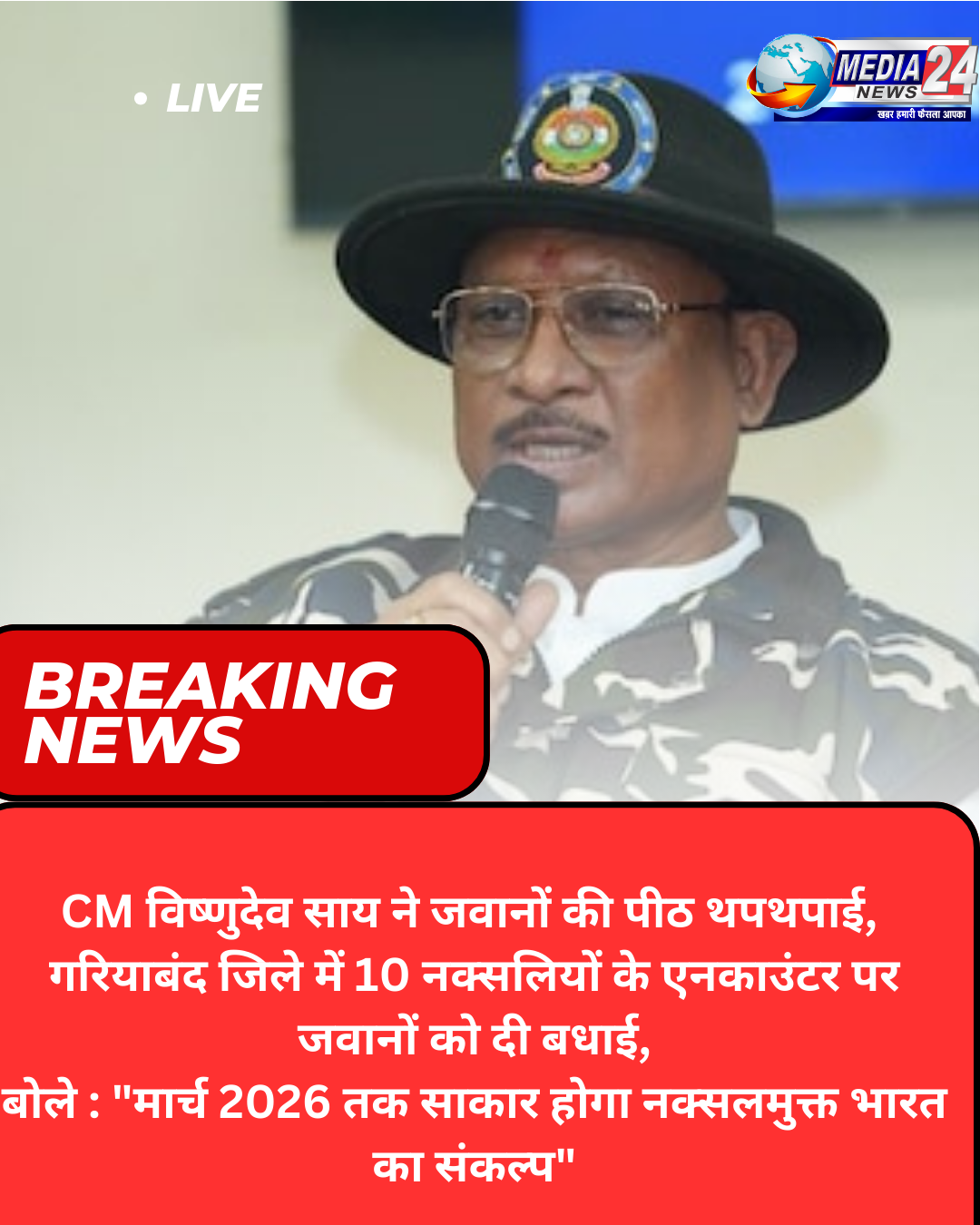 मुख्यमंत्री विष्णुदेव साय ने कहा कि यह घटनाएँ इस बात का स्पष्ट प्रमाण हैं कि नक्सलियों की झूठी विचारधारा अब दम तोड़ रही है। छत्तीसगढ़ में विश्वास, विकास और शांति की नई सुबह का उदय हो रहा है। प्रधानमंत्री नरेंद्र मोदी जी के मार्गदर्शन और केंद्रीय गृहमंत्री श्री अमित शाह जी के नेतृत्व में हमारा विश्वास है कि मार्च 2026 तक ‘नक्सलमुक्त भारत’ का संकल्प साकार होगा।