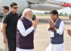 छत्तीसगढ़ राज्य स्थापना दिवस के अवसर पर प्रधानमंत्री नरेंद्र मोदी के रायपुर आगमन पर उनका भव्य स्वागत किया गया। जैसे ही प्रधानमंत्री मोदी का विमान रायपुर एयरपोर्ट पर उतरा, वहां मौजूद कैबिनेट मंत्री, सांसद, विधायक और वरिष्ठ अधिकारियों ने उनका गर्मजोशी से स्वागत किया।