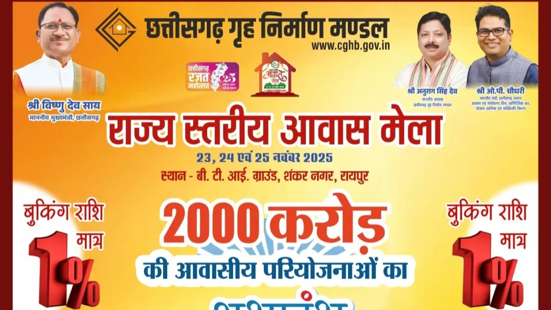 छत्तीसगढ़ गृह निर्माण मंडल 23 से 25 नवंबर 2025 तक राजधानी रायपुर के बी.टी.आई. ग्राउंड, शंकर नगर में राज्य स्तरीय आवास मेला आयोजित करेगा। मुख्यमंत्री विष्णुदेव साय और आवास एवं पर्यावरण मंत्री ओ.पी. चौधरी के मार्गदर्शन में यह मेला प्रदेशवासियों को सुलभ और किफायती आवास उपलब्ध कराने की दिशा में एक महत्वपूर्ण कदम है।