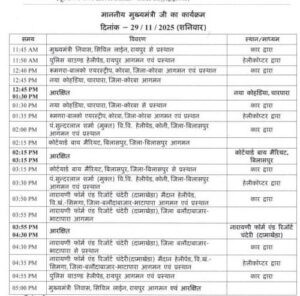 🔹 05:00 PM – मुख्यमंत्री निवास रायपुर पहुंचेंगे, इसके बाद समय आरक्षित