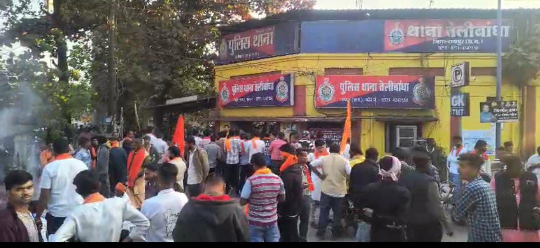 बजरंग दल के कार्यकर्ताओं ने शनिवार को तेलीबांधा थाना के सामने सड़क जाम कर प्रदर्शन किया। यह प्रदर्शन मैग्नेटो मॉल में तोड़फोड़ के मामले में दर्ज FIR के विरोध में किया गया। प्रदर्शनकारियों ने सड़क पर हवन किया, जिससे ट्रैफिक व्यवस्था बुरी तरह प्रभावित हुई।