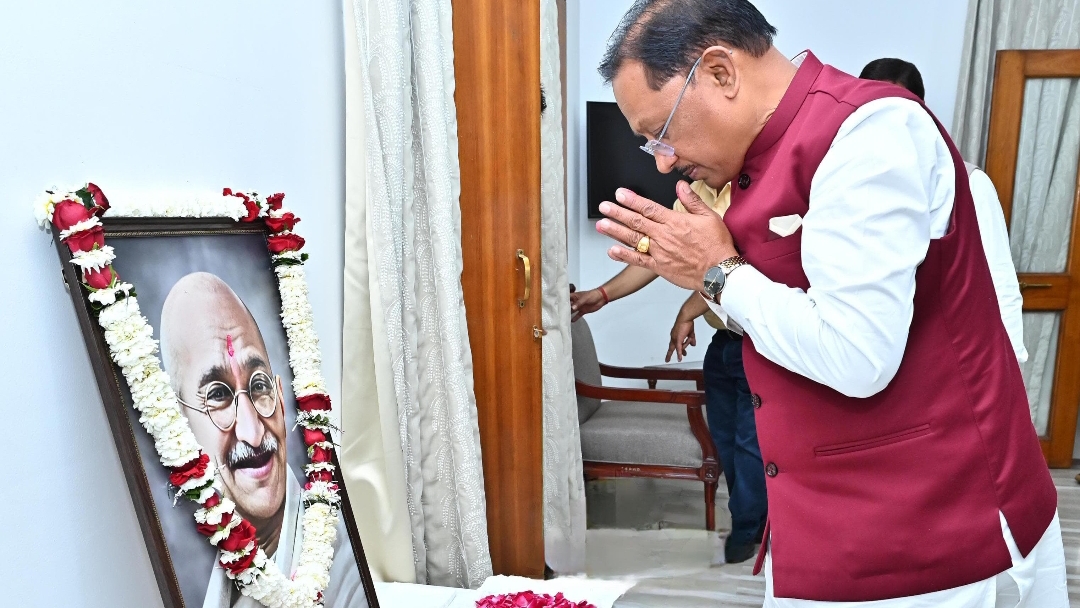 मुख्यमंत्री विष्णु देव साय ने महात्मा गांधी की पुण्यतिथि के अवसर पर राजधानी रायपुर स्थित मुख्यमंत्री निवास कार्यालय में उनके छायाचित्र पर पुष्पांजलि अर्पित कर नमन किया।